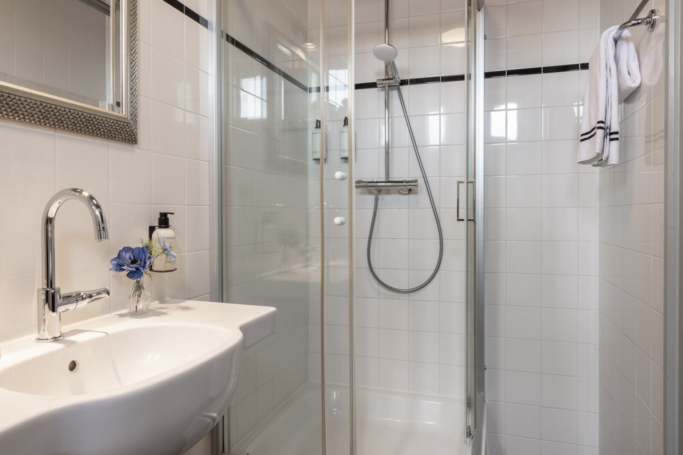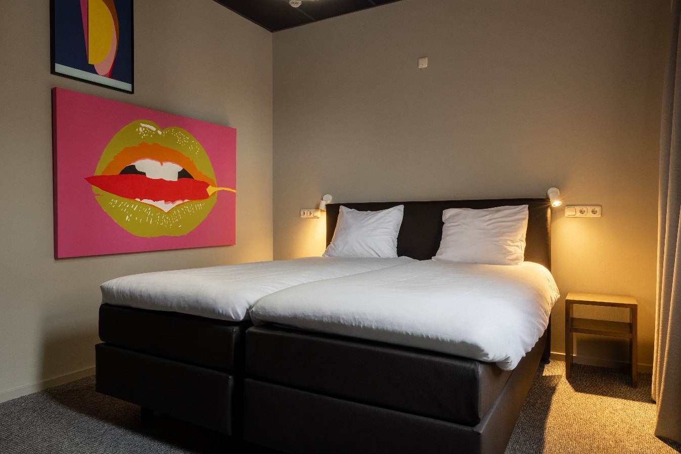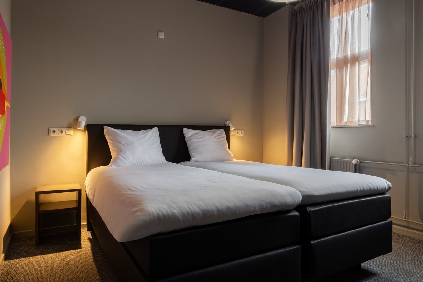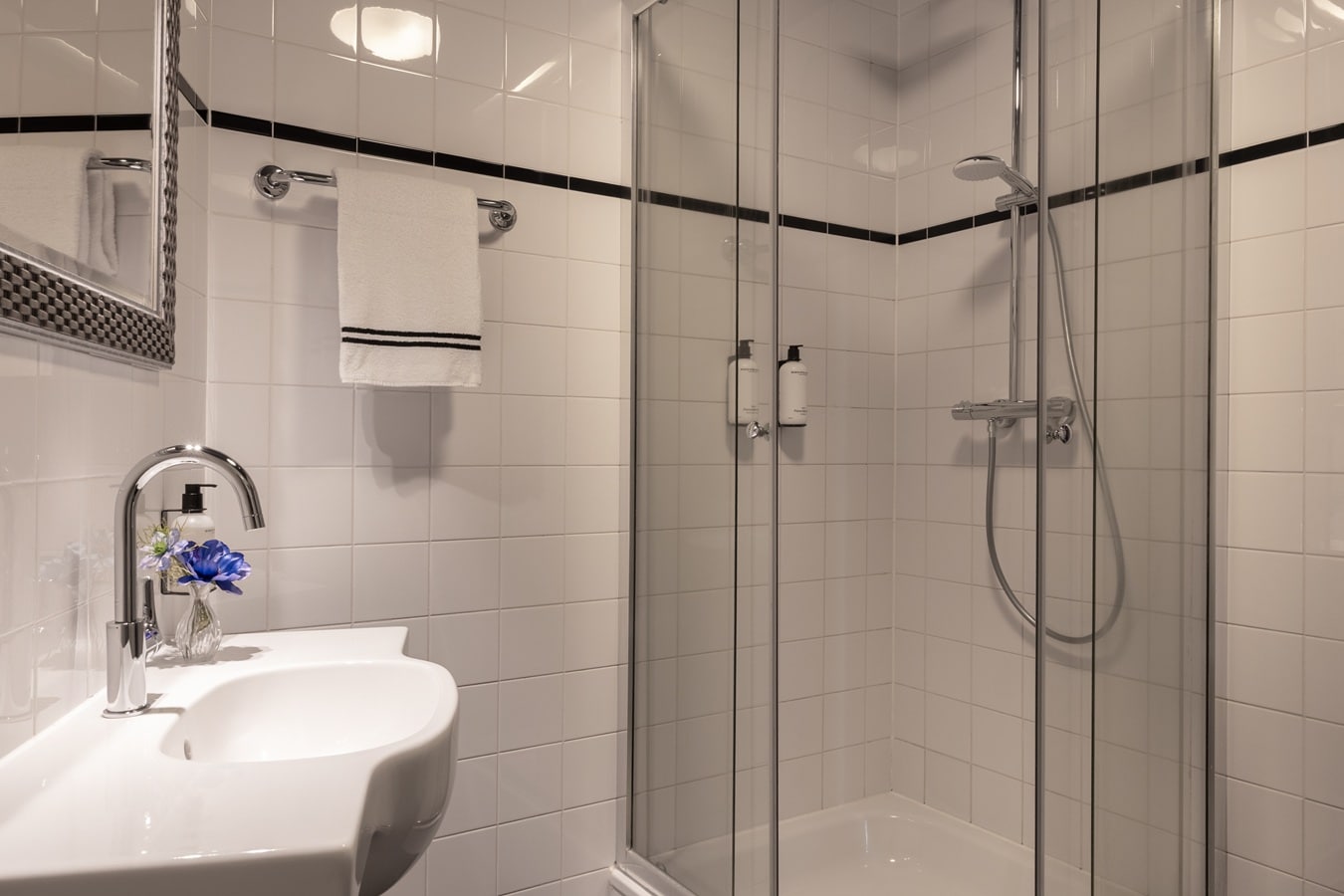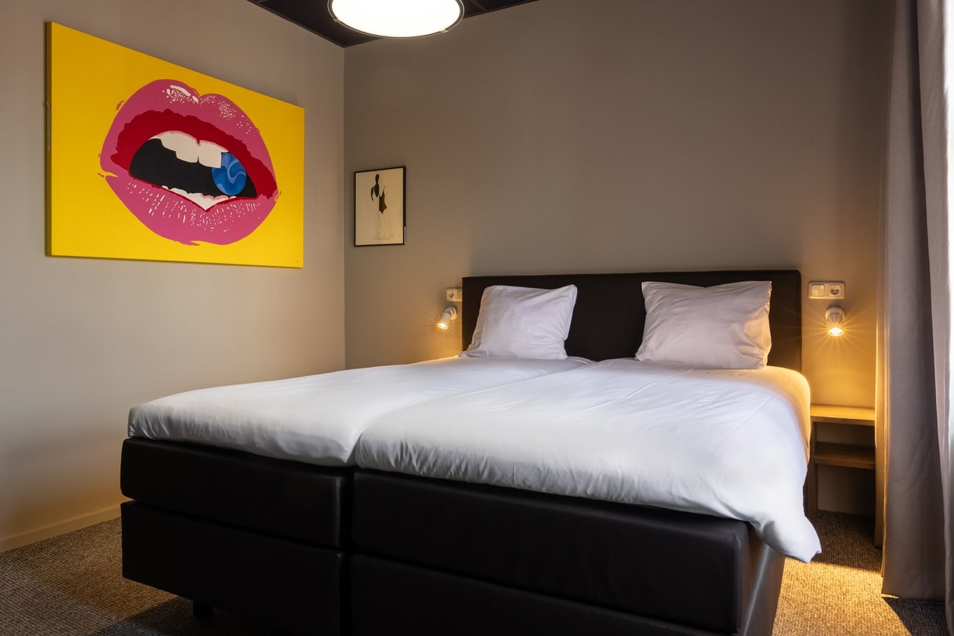 Deze comfortabele kamer van 16 m² op de 1ste etage grond is met zorg ingericht voor een ontspannen verblijf. Geniet van het kingsize Avek-bed en een ruime badkamer, voorzien van producten van Marie-Stella-Maris. Koffie- en theefaciliteiten vind je in de koffiecorner.